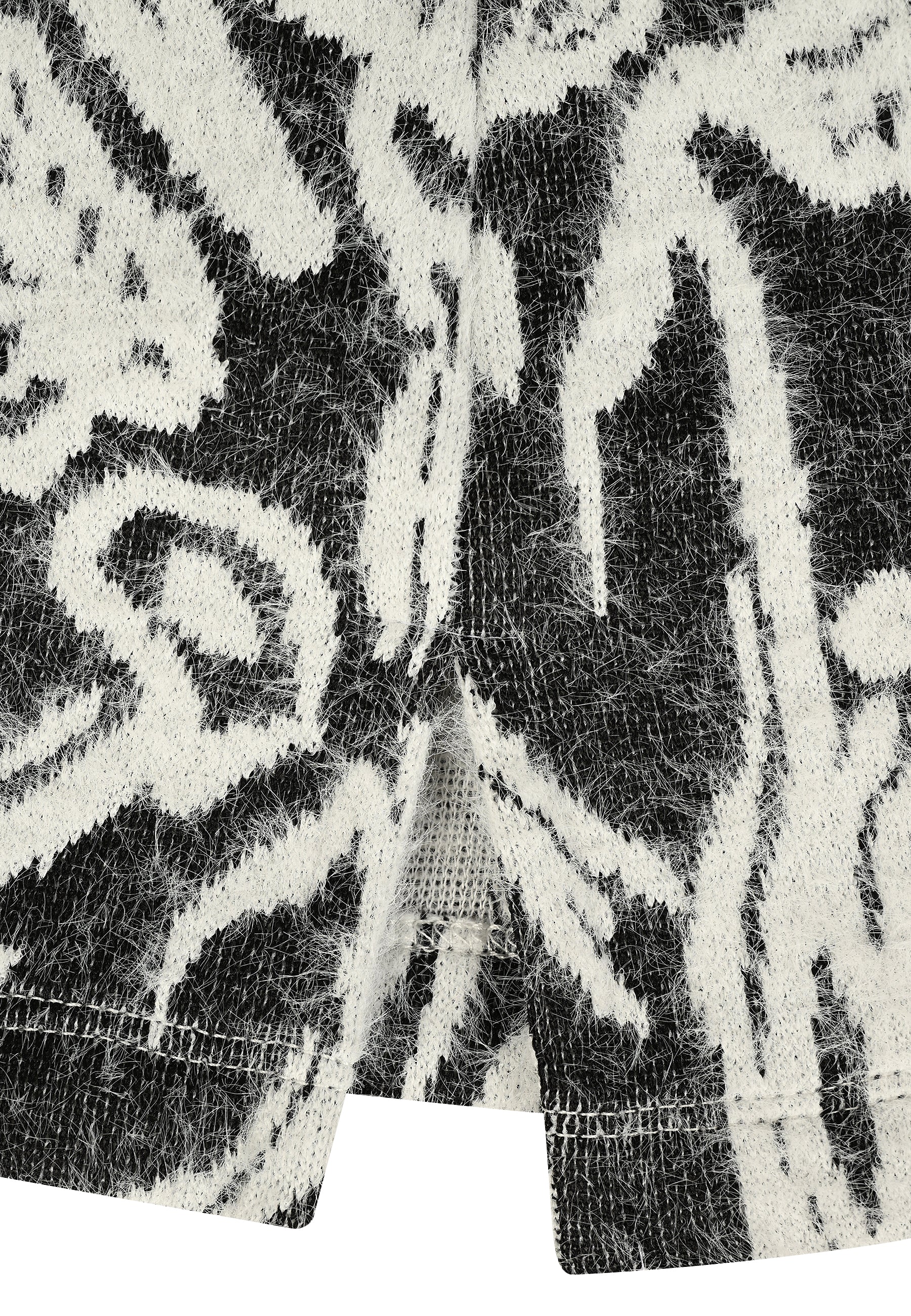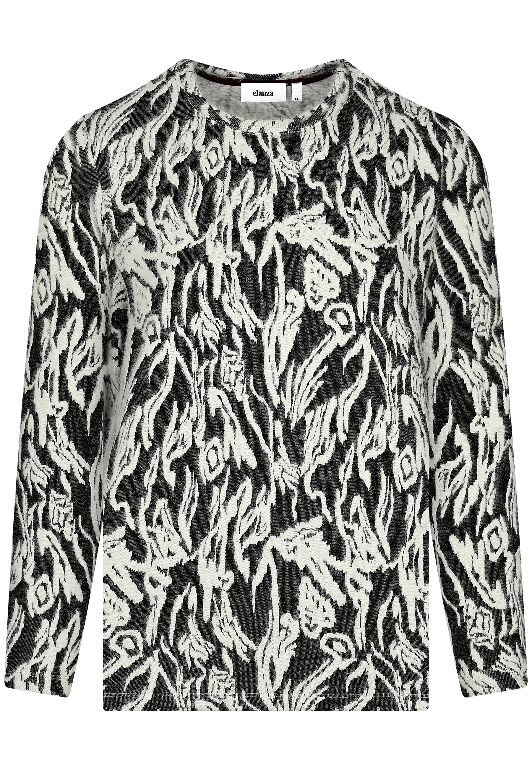 Kuschelig weich und dennoch angenehm leicht zu tragen, präsentiert elanza in dieser Saison ein Shirt, das eine perfekte Mischung aus Longsleeve und Strickpullover ist. Die hochwertige Qualität ist besonders weich und flauschig und liegt angenehm auf der Haut. Der Jacquard-Strick erzeugt ein raffiniertes Muster in der Farben Weiß und Anthrazit. Die Ärmel sind elegant lang gehalten und seitliche Saumschlitze geben einen lockeren Fall im Hüftbereich. Ein besonderes Modell für viele Anlässe: Klassisch zu Stoffhosen oder leger zu Jeans kombiniert, ist dieses elanza-Modell ein Lieblingsstück an kühlen Tagen.