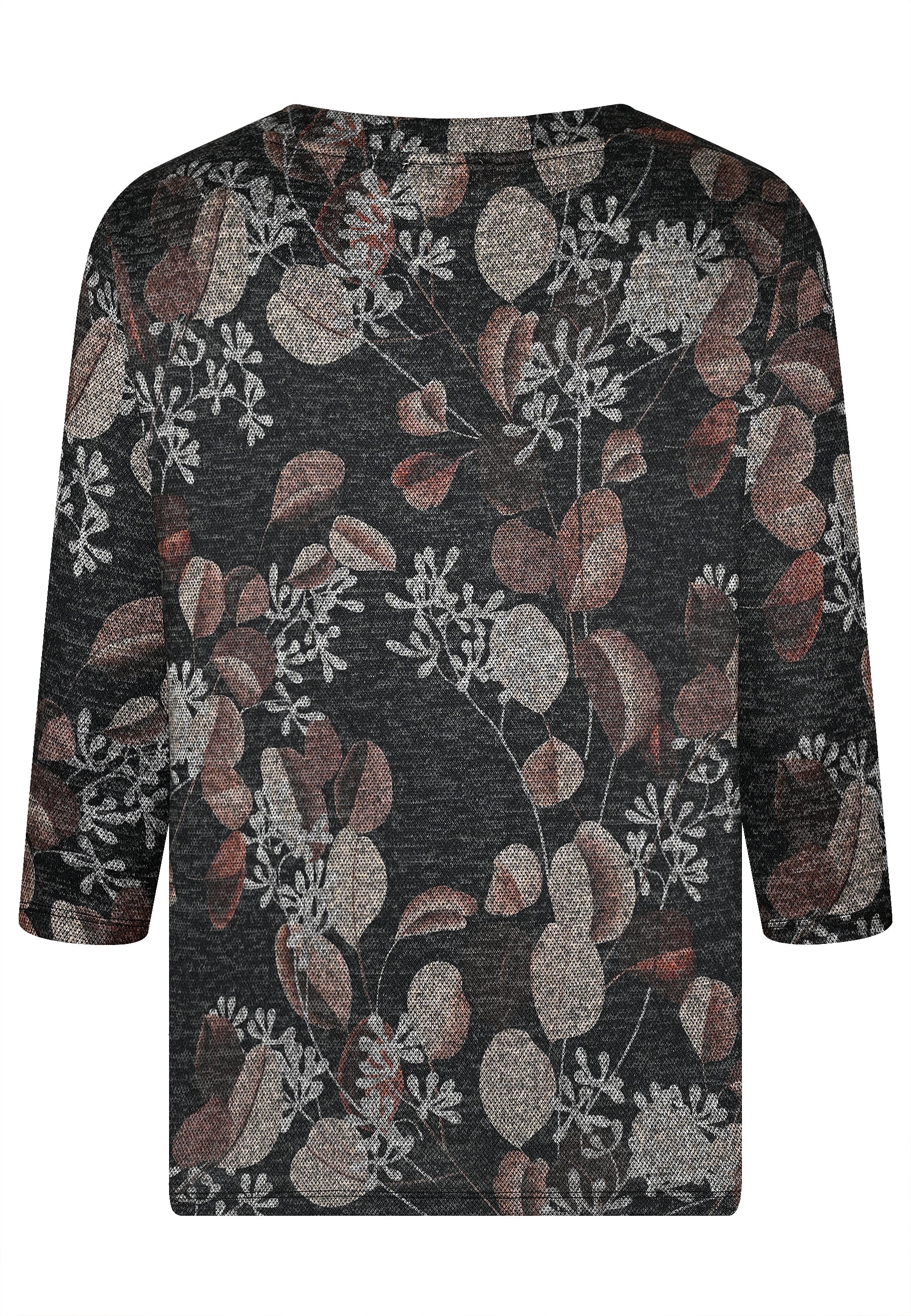 E25791 Shirt mit Blätter-Print in Anthrazit/Braun