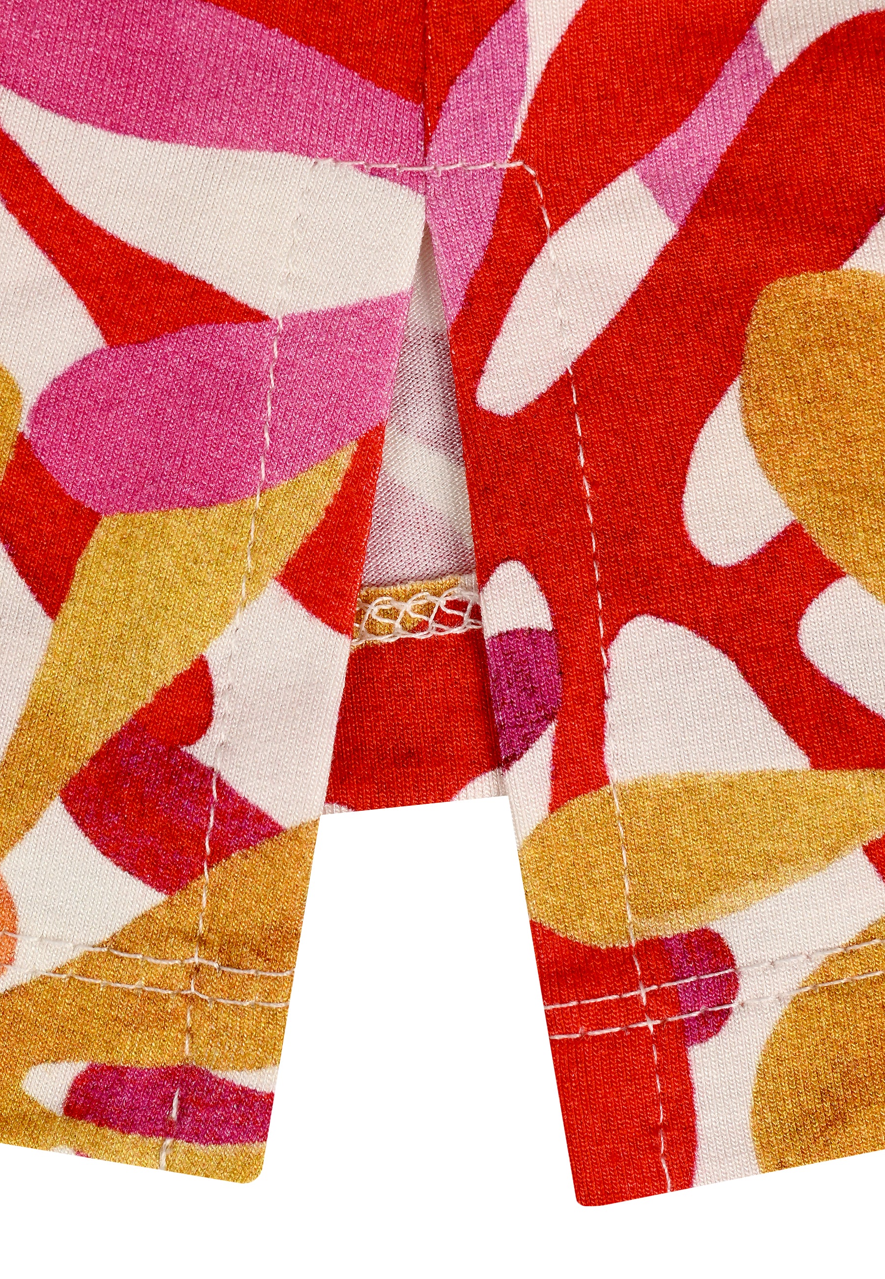 Dit shirt uit de nieuwe elanza-collectie is een ware kleurenexplosie in roze, rosé en oranje met gestileerde bloemen. De viscose jersey is zacht en aangenaam glad, voelt heerlijk zacht aan op de huid en laat de opdruk bovendien glanzen. Naast de look is dit shirt ook ontworpen om bijzonder comfortabel te dragen: de mouwen hebben een comfortabele lengte, zijn niet te kort en de snit is licht getailleerd, maar toch losjes. Een perfecte basic voor de start van het nieuwe seizoen en gemakkelijk te combineren met de nieuwe elanza comfort denim.