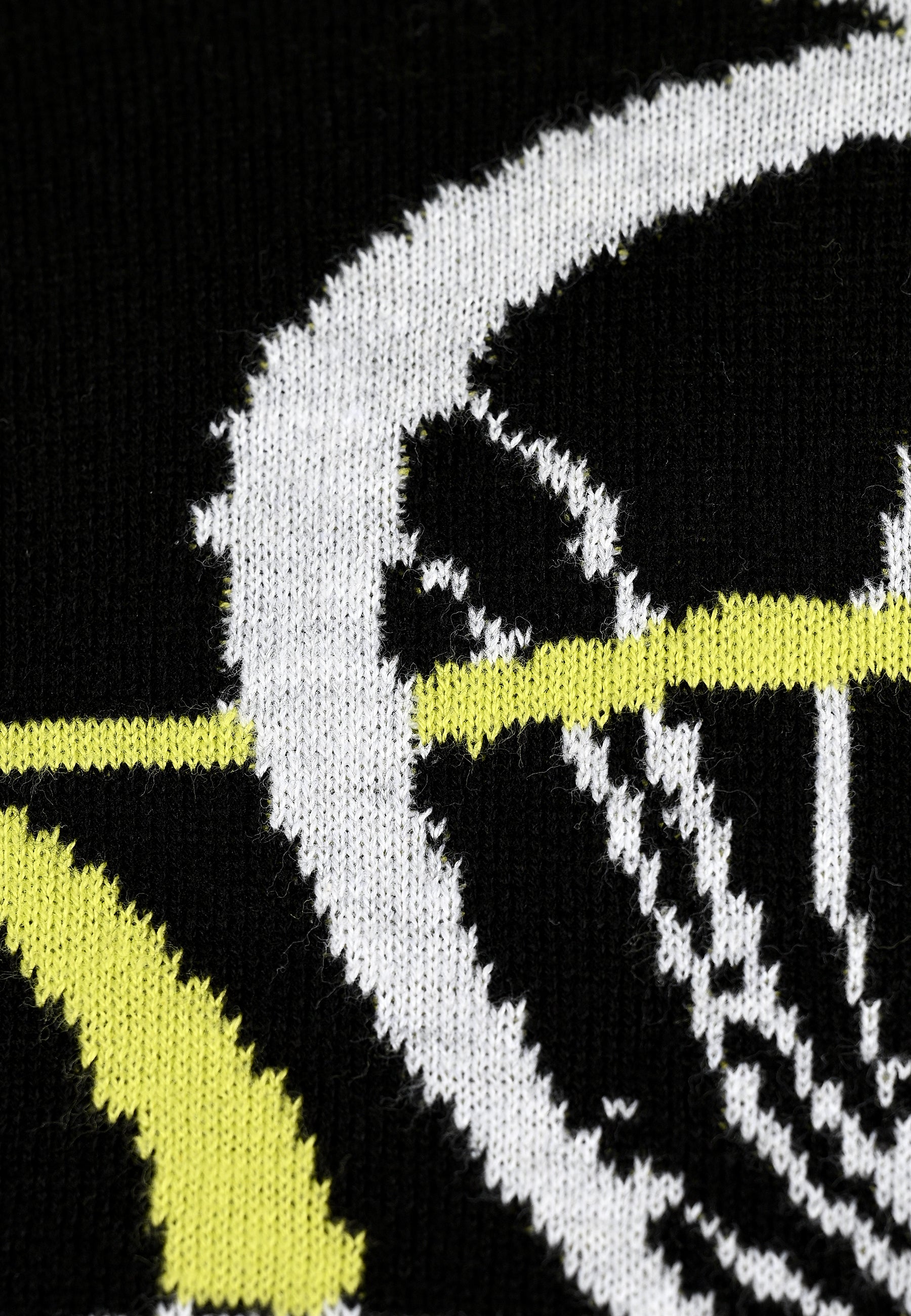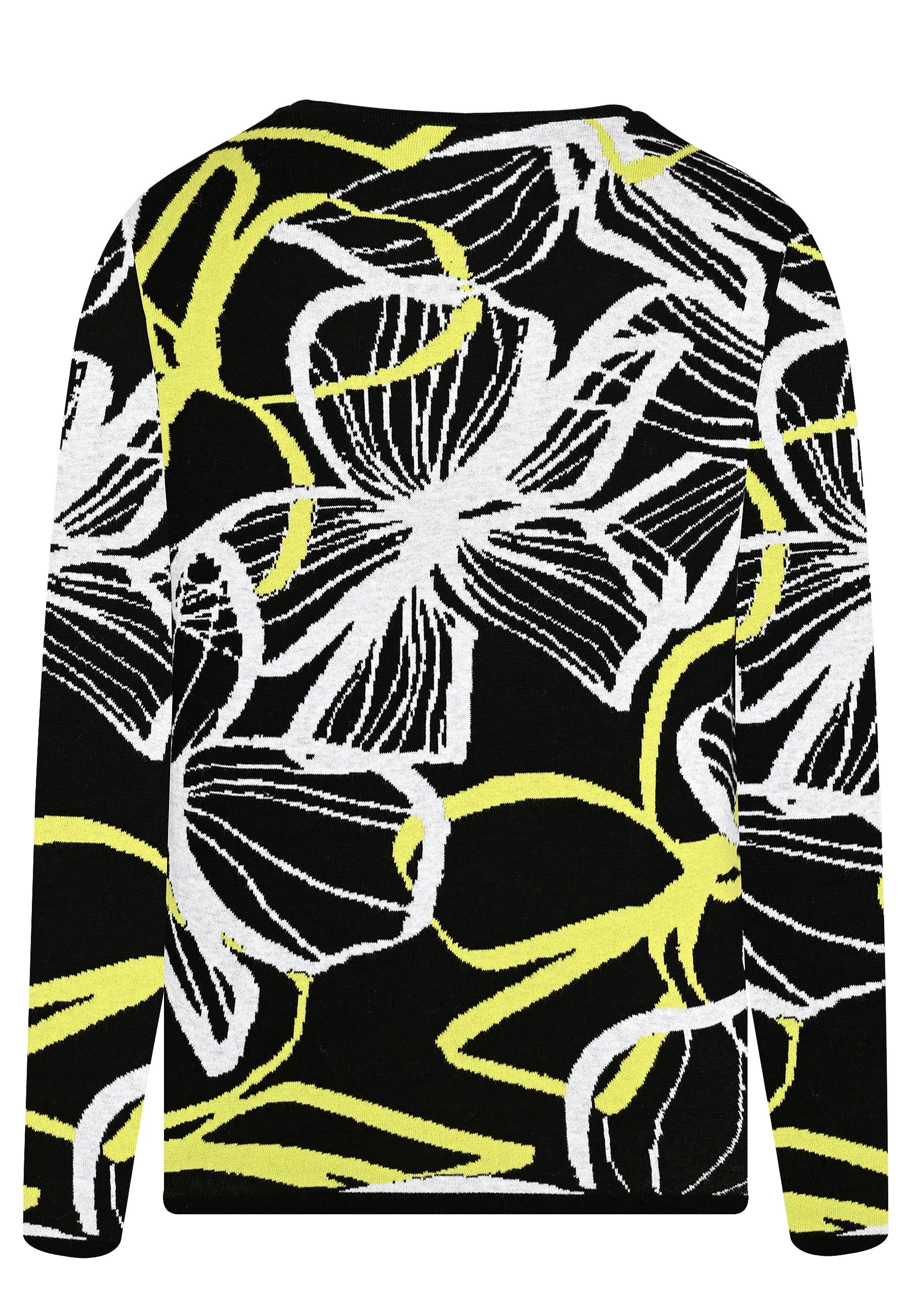 E25881 Strickpullover mit Blütenmuster in Schwarz/Hellgrün