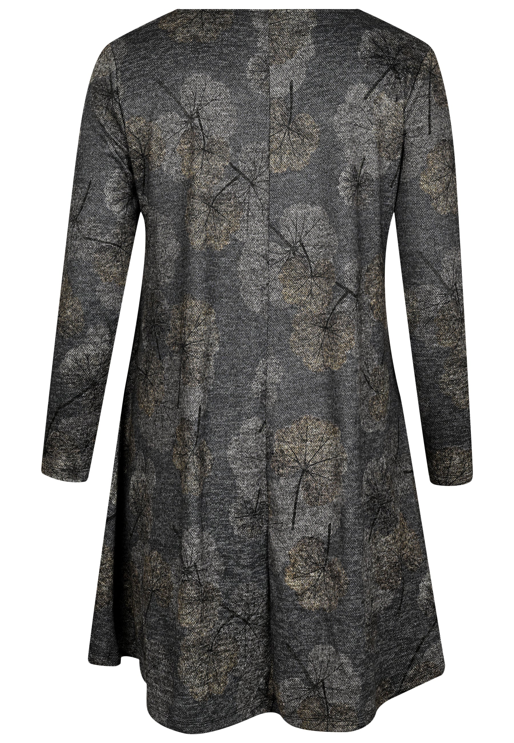 E25891 Kleid mit Ginko-Print in Grau/Blau